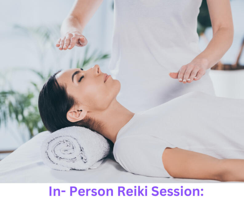 This 75- minute is conducted in-person, which allows clients to experience hands-on energy healing. This session includes a 10-15 minute private conversation. This conversation provides clients with the opportunity to discuss their current physical, mental, and emotional state. It also sets any goals they have for this session. Then, clients will move onto the treatment table and receive a 50-minute Reiki treatment. Tuning forks will be used during your Reiki session to enhance energy balance, promote relaxation. This treatment includes soothing sounds, essential oils, crystals, and sage/Palo Santo at the client's discretion. This session concludes with a 10-15 minute follow-up conversation, which covers messages from the client's spiritual team, questions clients may have, and any recommendations of ongoing next steps. A complimentary oracle card reading is included at the end of the session.